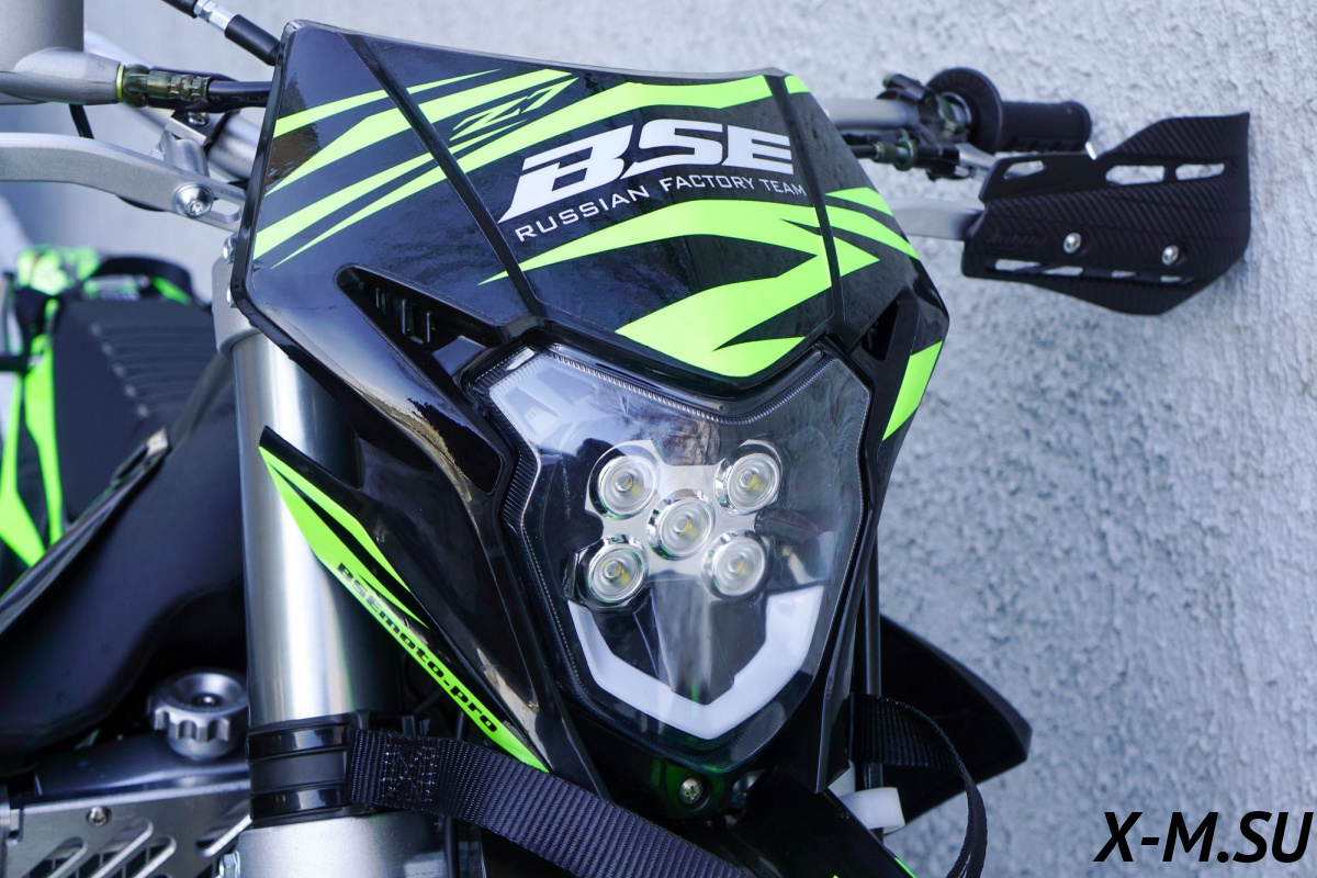 На BSE Z7 также можно с комфортом отправиться в продолжительное путешествие благодаря удобному сиденью, широкому спортивному рулю, наличию электростартера и баку на 11 литров. Благодаря яркой LED фара головного света можно кататься в ночное время.