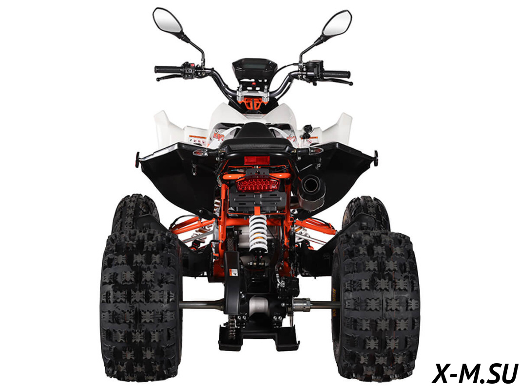 На KAYO A300 задействована развитая многорычажная подвеска. Удлинённые рычаги позволили изменить угол наклона амортизаторов и увеличить ширину колеи. Это повысило устойчивость и управляемость квадрицикла. Для адаптации под конкретные задачи подвеску можно настраивать. Длина переднего амортизатора 375 мм, длина заднего амортизатора 380 мм.