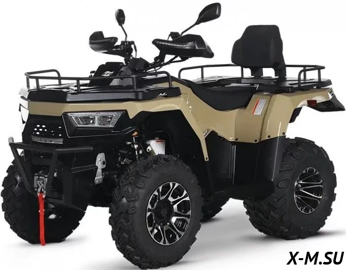Начало работы мотора от системы электронного пуска, питание происходит по инжекторному типу. Силовая установка имеет рабочий объем 275 куб. см, а мощность в 22 л.с. с легкостью разгоняет внедорожник до 80 км/ч. Квадроцикл имеет массу 280 кг.