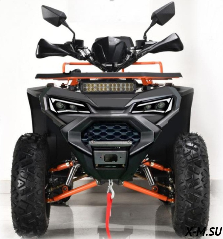 Особого внимания заслуживает богатая комплектация, включающая светодиодную балку дополнительного света, фаркоп, защиту рук, шноркель и USВ-порт для зарядки мобильных устройств. Наличие лебедки расширяет возможности использования квадроцикла в сложных условиях.