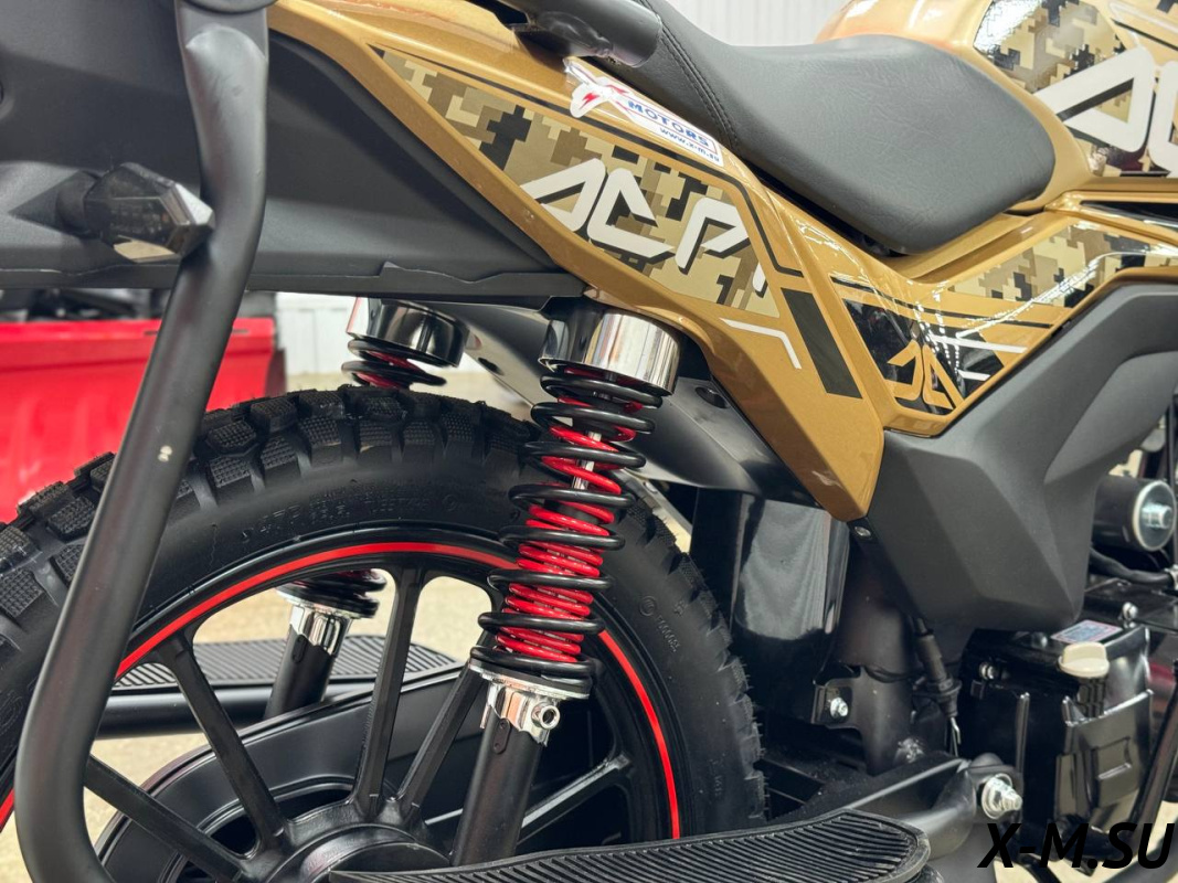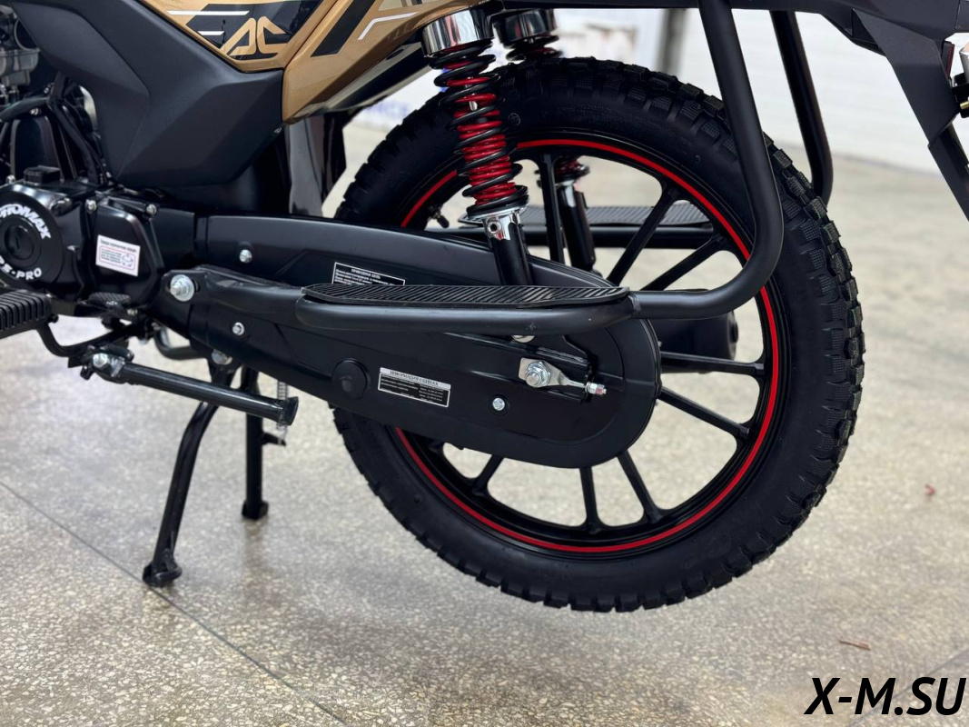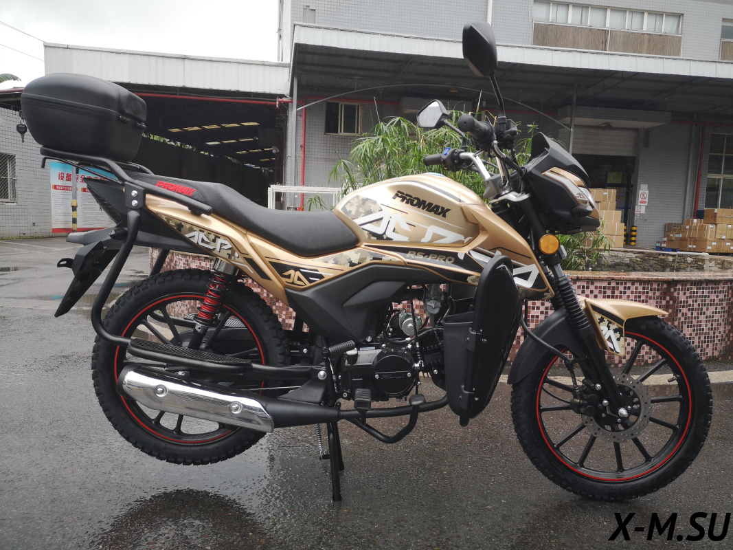 Рама мотоцикла PROMAX ALPHA RS-PRO сделана на базе новейше модели мопеды HONDA – самая надежнейшая рама c увеличенной допустимой нагрузкой в 250кг! Рама выполнена из CR-MO (хромолибден) стали, покрыта раптором! Максимальный запас прочности и защиты от коррозии! Держит раму на себе подвеска перевернутого типа спереди и моноамортизатор сзади от KKE, с возможностью тончайшей настройки для ваших задач и целей! В таком сочетании люфты подвески отсутствуют – при резком страгивании с места мотоцикл не рыщет, стоит ровно, уверенно!