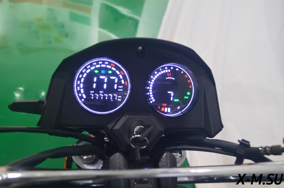 Приборная панель LCD панель отображает всю текущую информацию о состоянии мотоцикла. Вся электроника имеет влагозащищенные разъемы, которые абсолютно исключают попадание воды и образование коррозии! Питает электронику аккумулятор, Li-ion, общим весом 200 грамм!!!