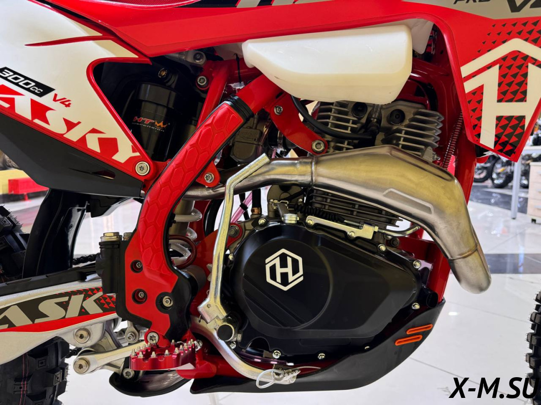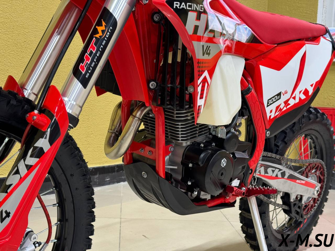 Мотоцикл Hasky V4 175 FMM PRO 300 – это полноразмерный эндуро с колесами 21 дюйм спереди и 18 дюйм сзади, разработанный для экстремальных условий и обладающий надежной и мощной конструкцией. В его основе лежит одноцилиндровый, 4-тактный двигатель Zongshen CB300RL/ZS175FMM-V-4 с балансирным валом и увеличенной цилиндро-поршневой группой (ЦПГ), оснащенный 75-миллиметровым поршнем. Двигатель имеет 4 клапана, способен развивать мощность до 26 лошадиных сил, работает с карбюратором Nibbi PWK 34 Race и запускается с помощью электростартера. Пятиступенчатая коробка передач обеспечивает четкое переключение, поддерживая отличную управляемость и динамику.