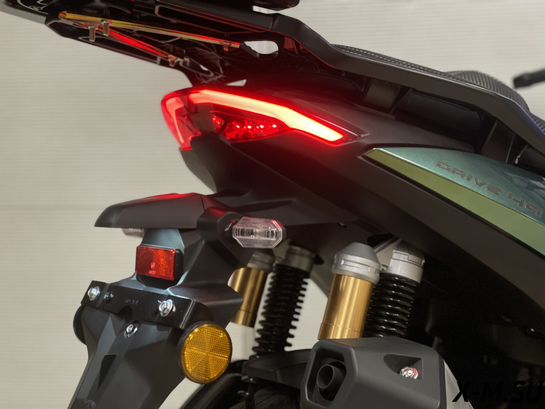Ветровое стекло, Спидометр, Зеркала, Литые диски, Центральная подножка, Панель приборов, Багажник под сиденьем, Фара, Защита двигателя