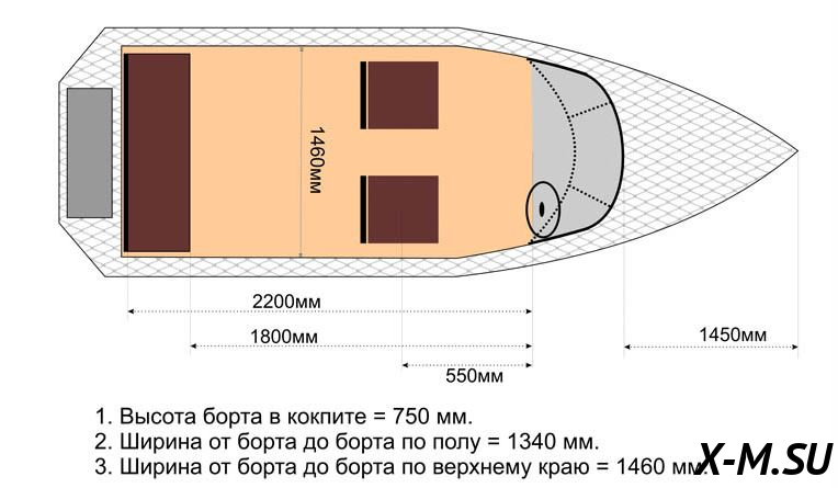 Высота борта в носу - 0,74 м.