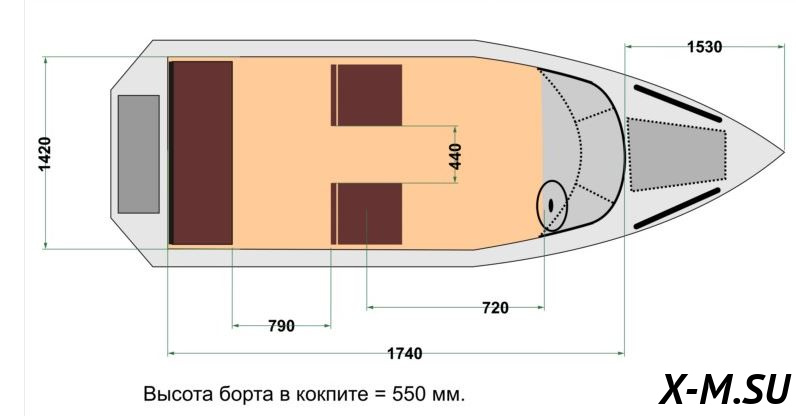 Высота борта на миделе - 930 мм.