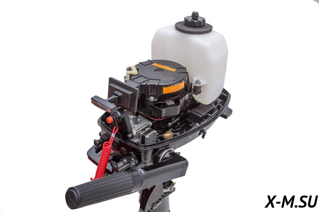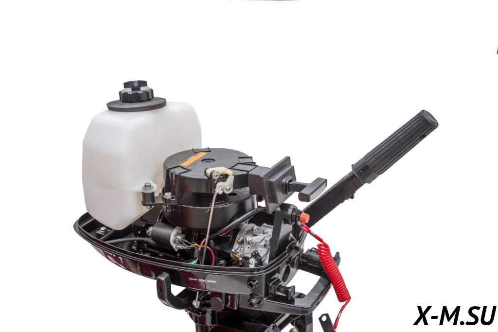 Мотор оборудован встроенным топливным бачком увеличенного объема (2,5 литра) и имеет возможность подключения внешнего топливного бака.