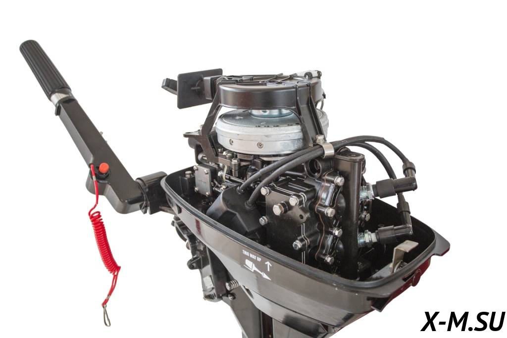 Мотор запускается ручным стартером и управляется стандартным румпелем с поворотной ручкой газа (гашеткой мотоциклетного типа) с анти-проскальзывающими насечками.