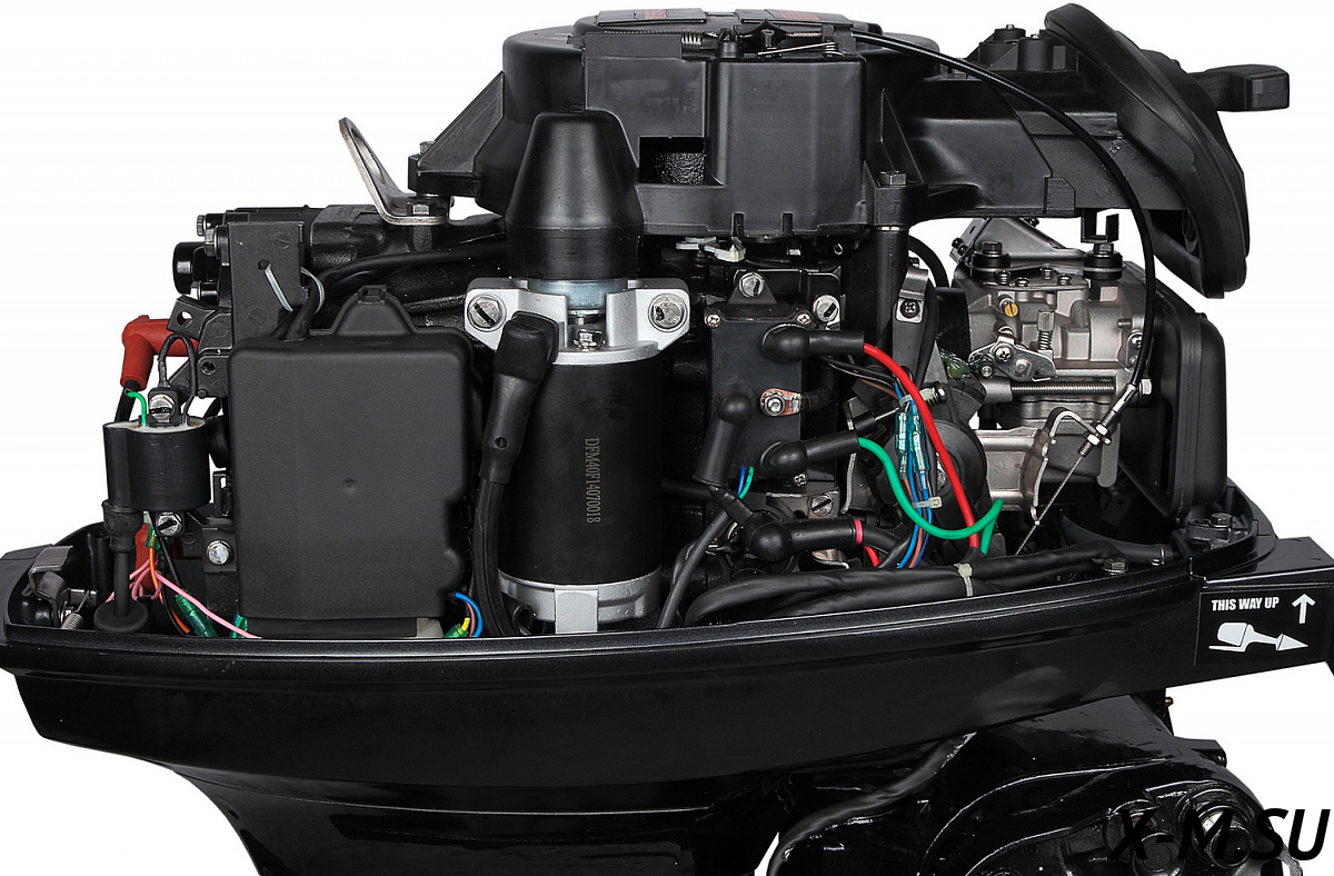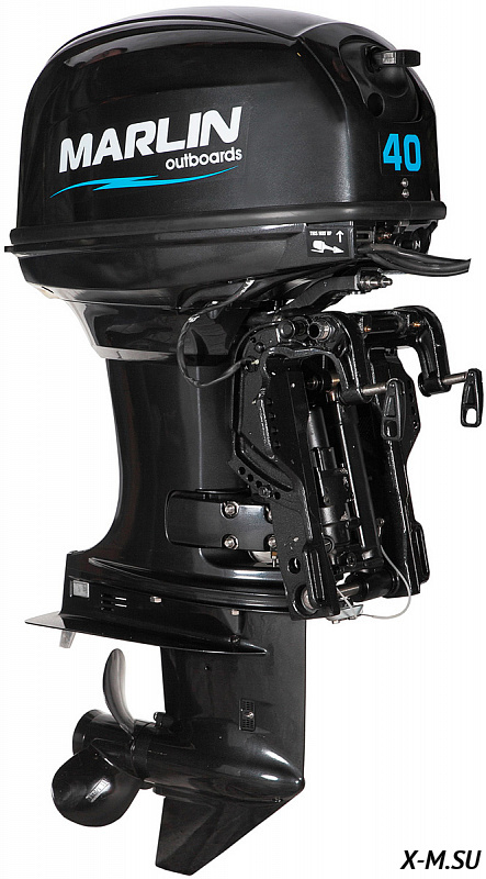 MP 40 AERTL: Лодочный мотор Marlin Outboards, двухтактный, 40 лошадиных сил, электрический запуск двигателя, дистанционное управление, гидропривод, длинная нога (дейдвуд).