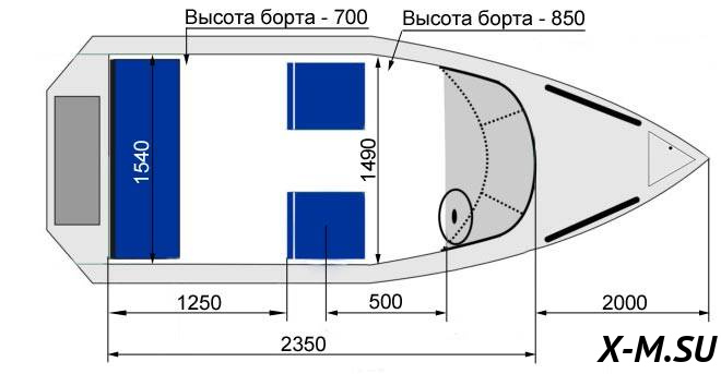 Высота борта на миделе от ОП - 0,87 м