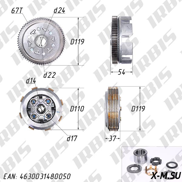 Барабан сцепления KAYO YX140/160 (кикстартер) 4 болта, 5 дисков, 67T в сборе