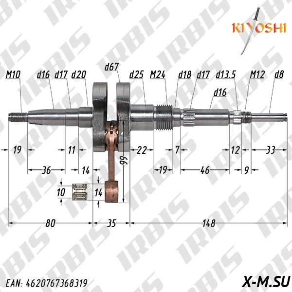 Вал коленчатый в сборе 2Т AD50, AF50, AG50; ADDRESS, SEPIA (+ игольчатый подшипн